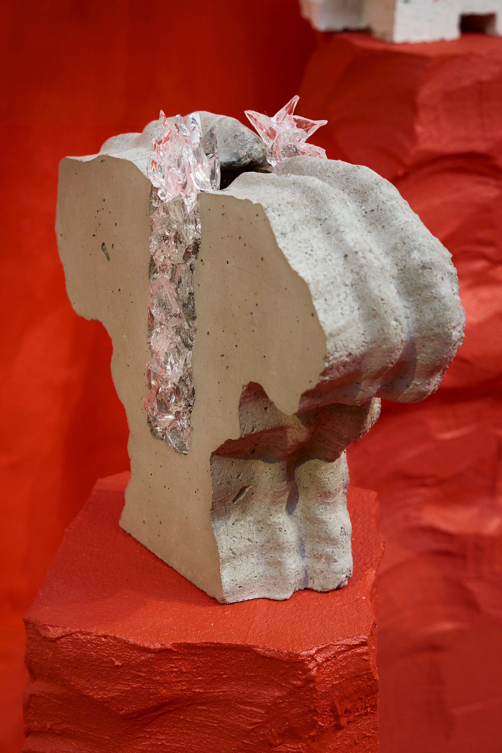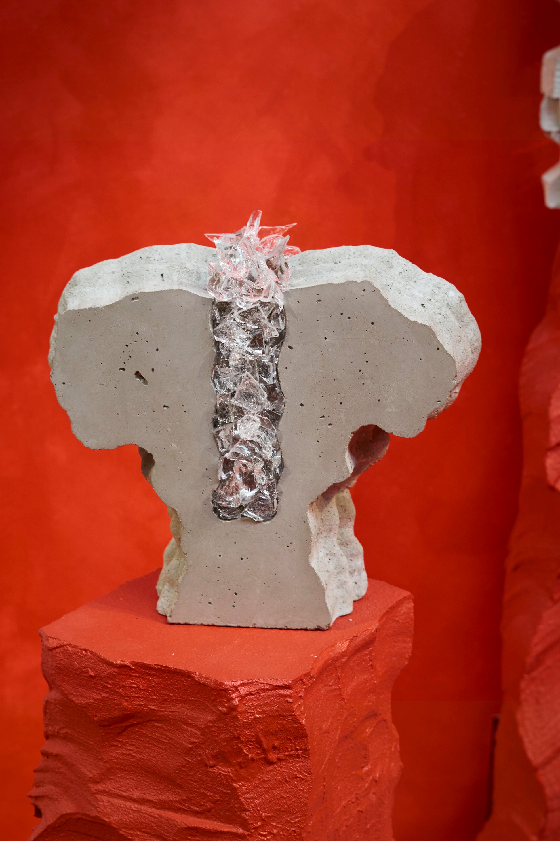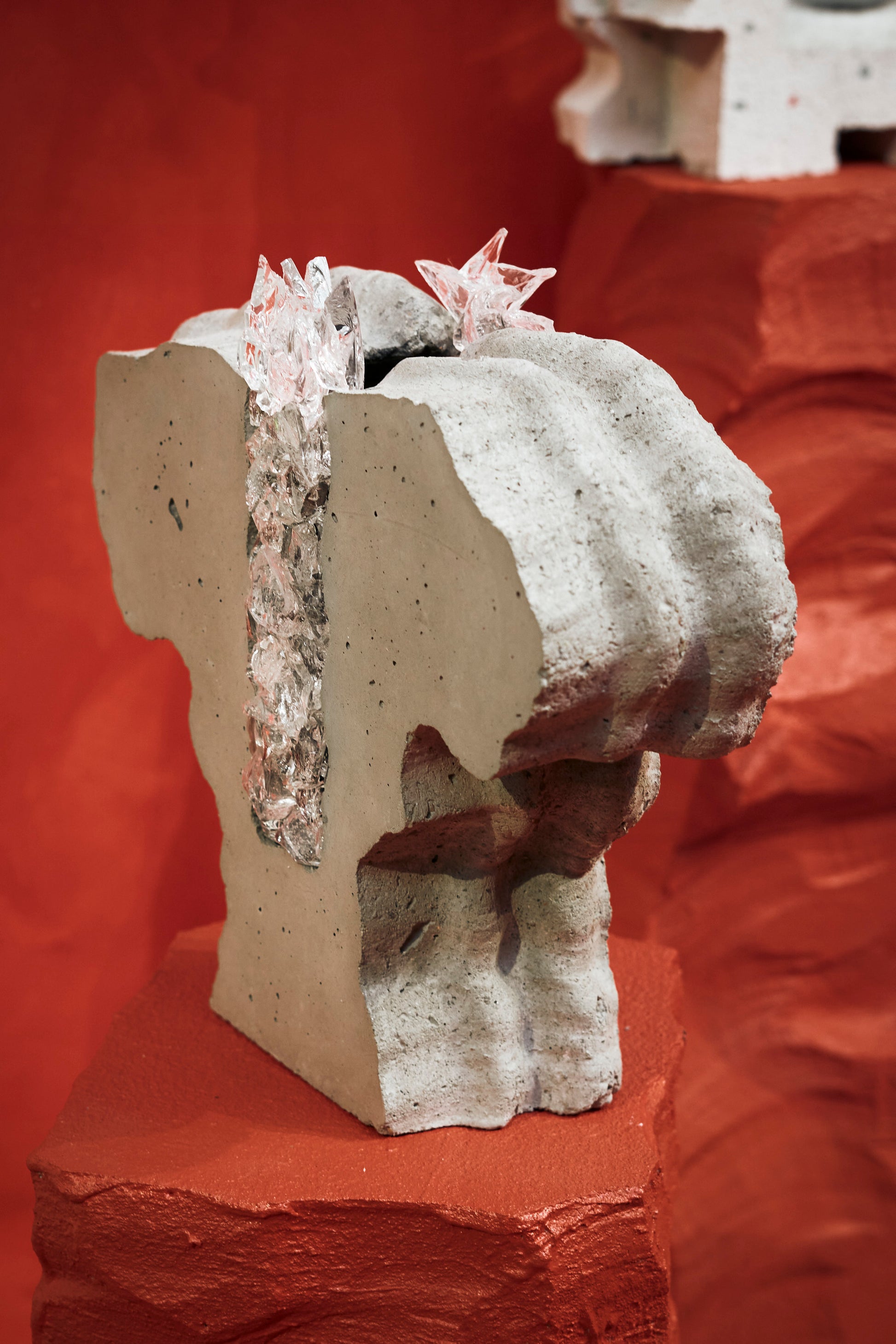 Prasklo is a brand of art vases by Prague female duo Petra Svejdarova and Klara vaculikova. Despite Prasklo has been collecting many positive responses from curators all over the world, it is not a commercial project. Prasklo sticks to artistic hand production of individual objects, not aiming for designing industrially produced goods. All vases are results of her fascination by the structure of glass which beauty can never be demeaned by disposing it; and its planting into a concrete pedestal.