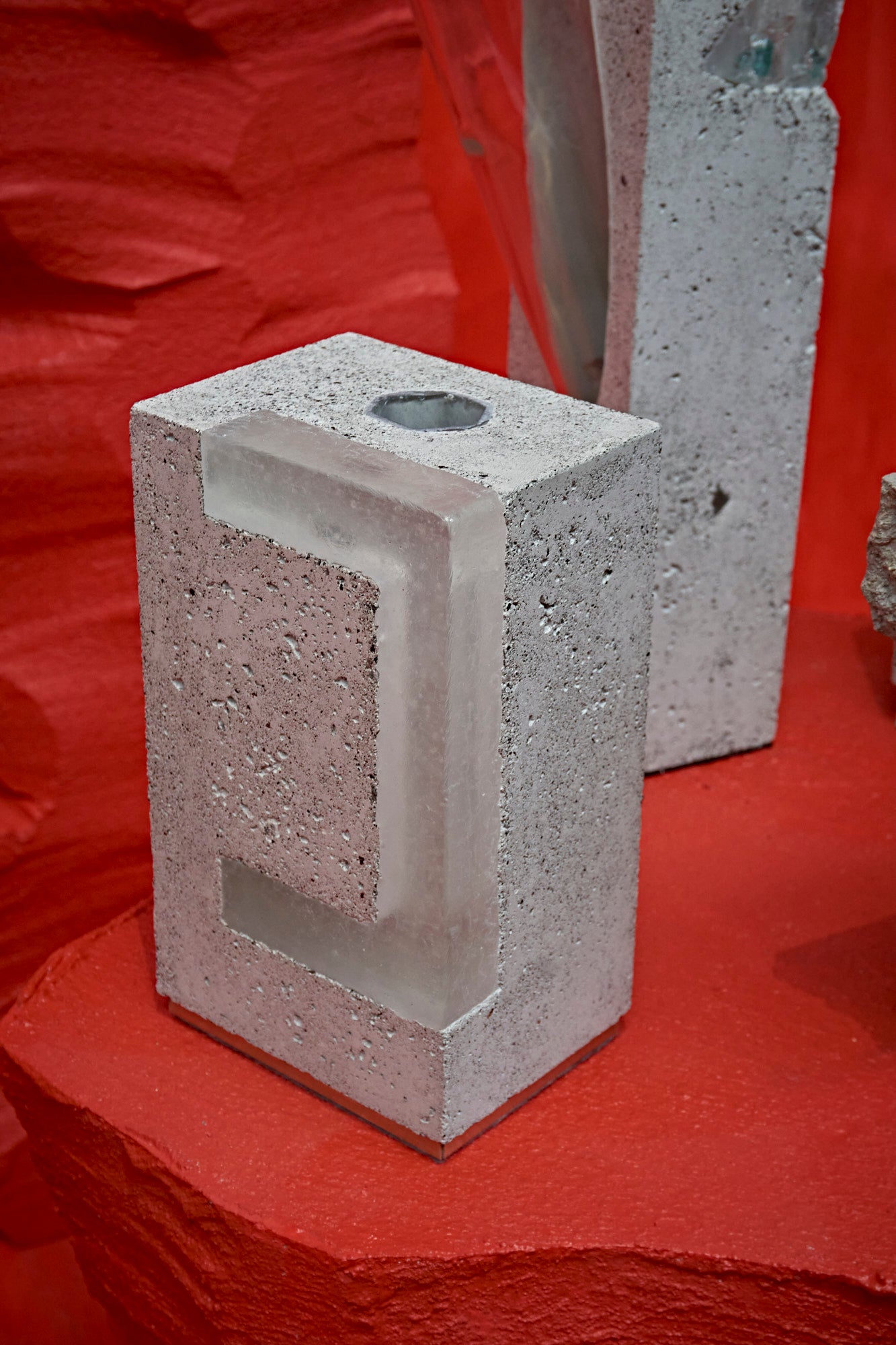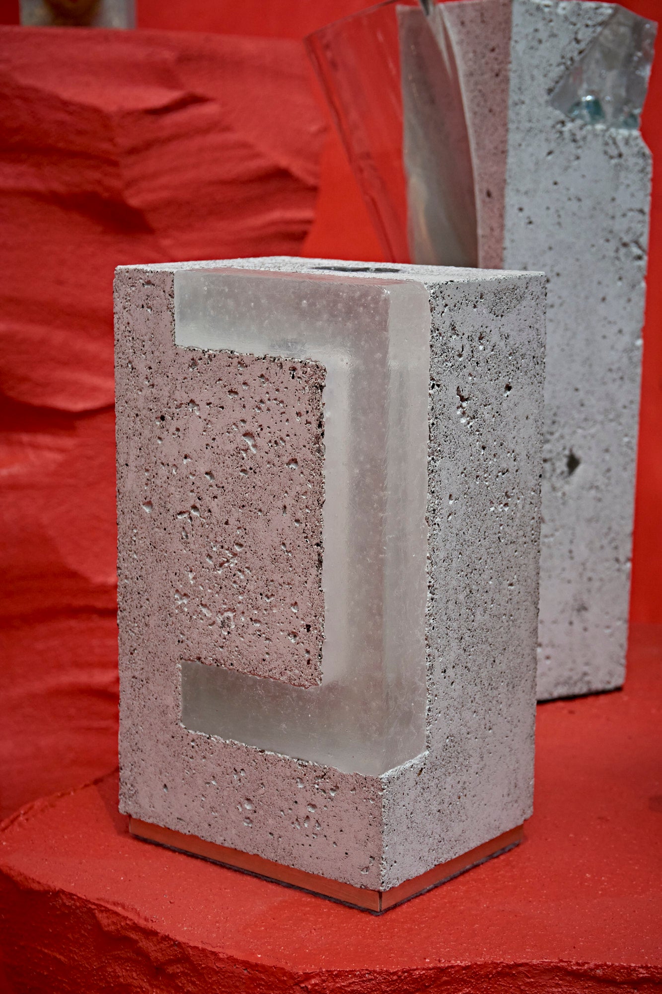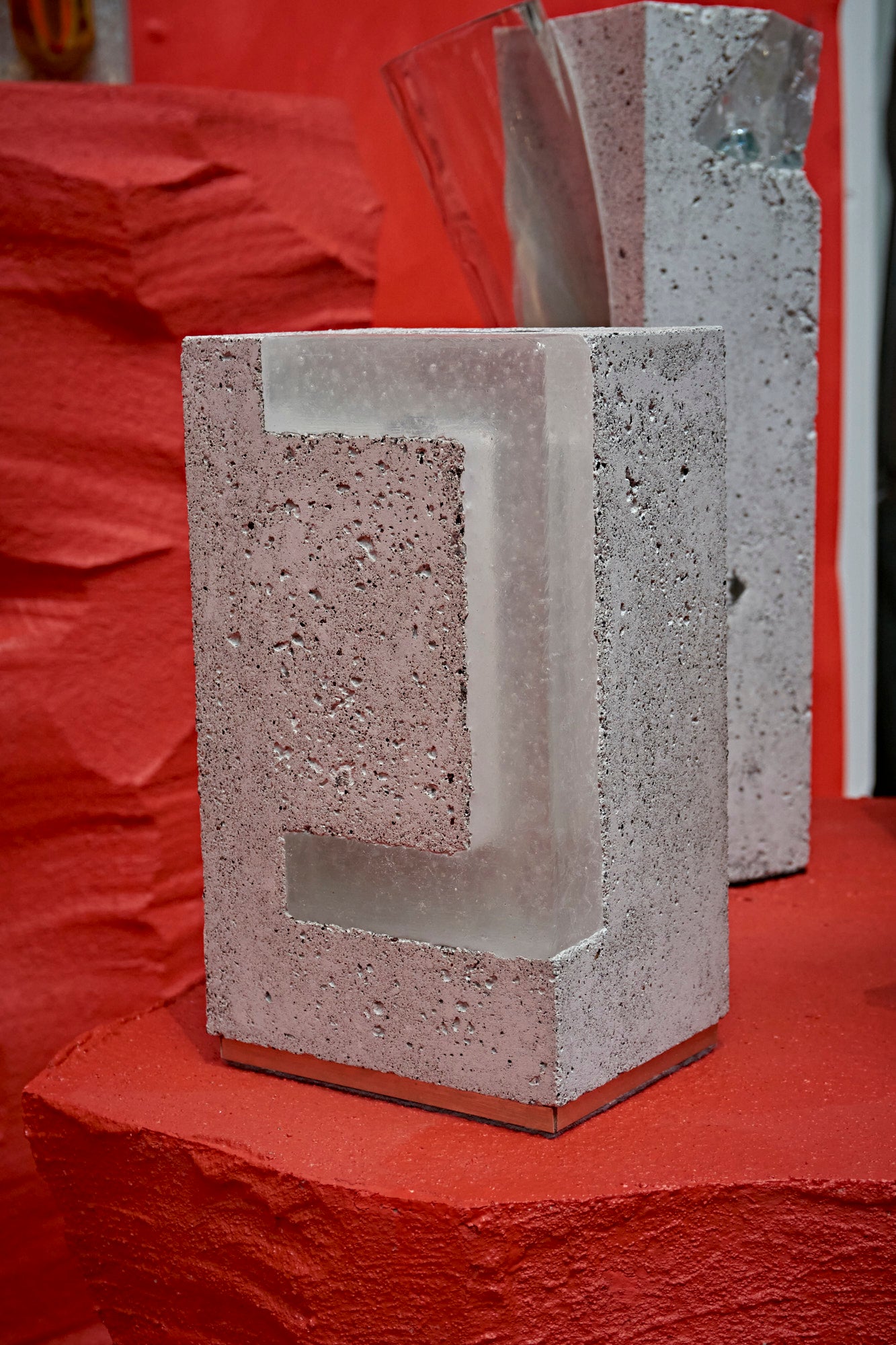 Prasklo is a brand of art vases by Prague female duo Petra Svejdarova and Klara vaculikova. Despite Prasklo has been collecting many positive responses from curators all over the world, it is not a commercial project. Prasklo sticks to artistic hand production of individual objects, not aiming for designing industrially produced goods. All vases are results of her fascination by the structure of glass which beauty can never be demeaned by disposing it; and its planting into a concrete pedestal.