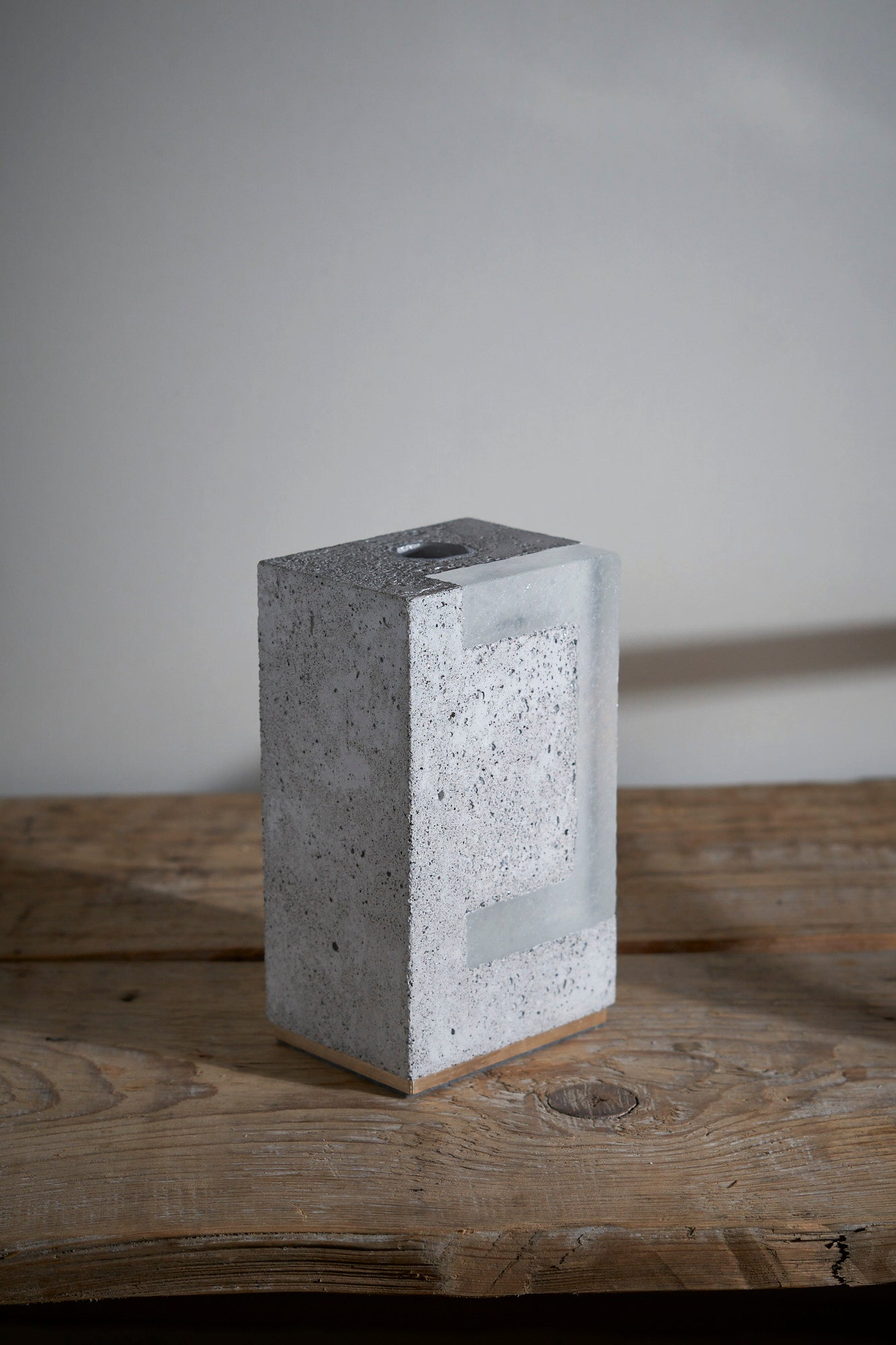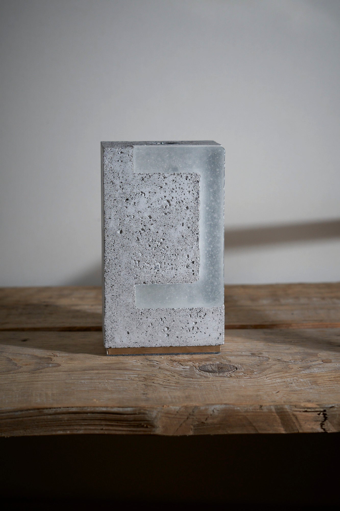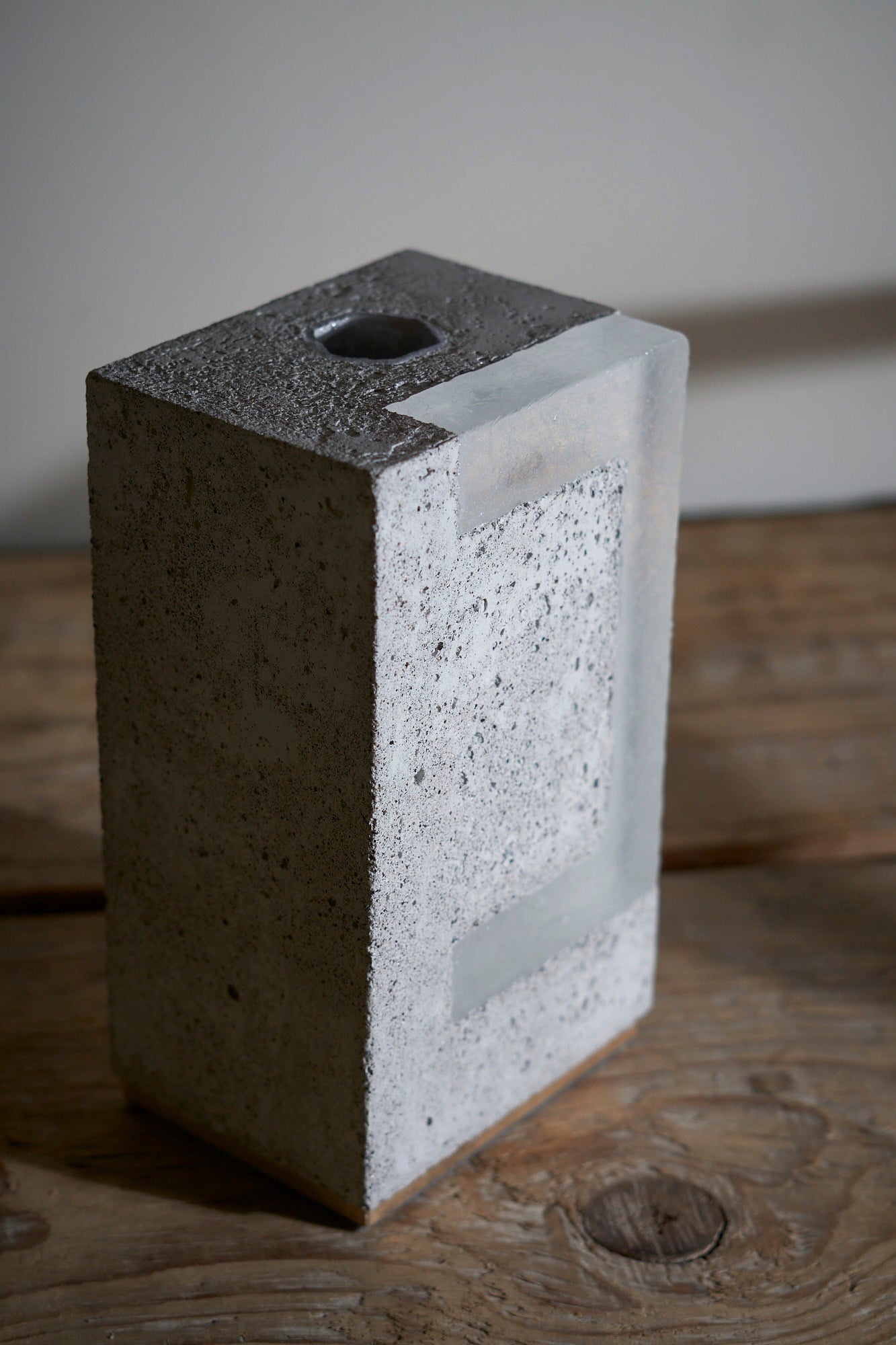 A vase created from up-cycled crystal material, glass and raw cement. Crystal is produced by Preciosa and used within the company's recycling program and environmental policy. Can be filled with water with no leaks. Solitary piece that looks wonderful in interior or exterior. Single hand made unique art vase. This vase weights 3kg.