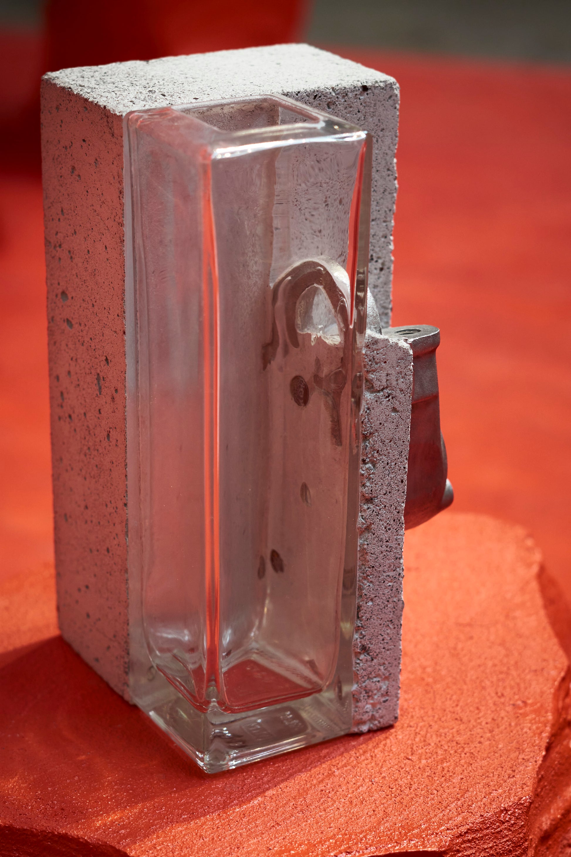 Prasklo is a brand of art vases by Prague female duo Petra Svejdarova and Klara vaculikova. Despite Prasklo has been collecting many positive responses from curators all over the world, it is not a commercial project. Prasklo sticks to artistic hand production of individual objects, not aiming for designing industrially produced goods. All vases are results of her fascination by the structure of glass which beauty can never be demeaned by disposing it; and its planting into a concrete pedestal.
