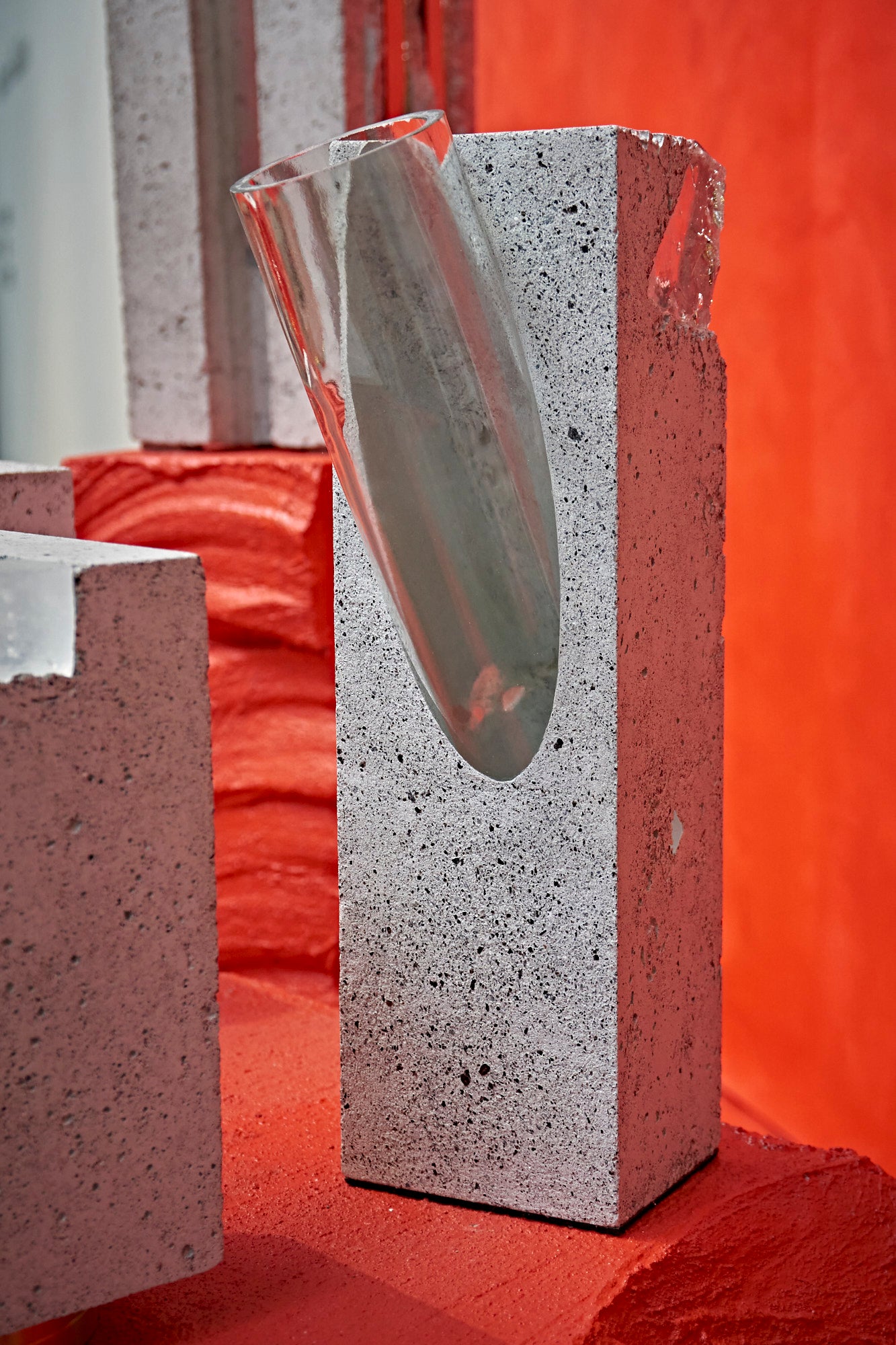 Prasklo is a brand of art vases by Prague female duo Petra Svejdarova and Klara vaculikova. Despite Prasklo has been collecting many positive responses from curators all over the world, it is not a commercial project. Prasklo sticks to artistic hand production of individual objects, not aiming for designing industrially produced goods. All vases are results of her fascination by the structure of glass which beauty can never be demeaned by disposing it; and its planting into a concrete pedestal.