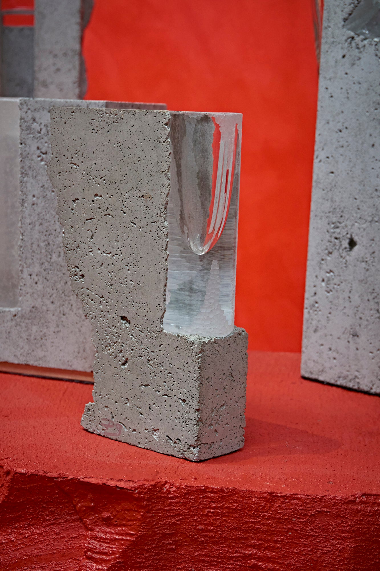 Prasklo is a brand of art vases by Prague female duo Petra Svejdarova and Klara vaculikova. Despite Prasklo has been collecting many positive responses from curators all over the world, it is not a commercial project. Prasklo sticks to artistic hand production of individual objects, not aiming for designing industrially produced goods. All vases are results of her fascination by the structure of glass which beauty can never be demeaned by disposing it; and its planting into a concrete pedestal.