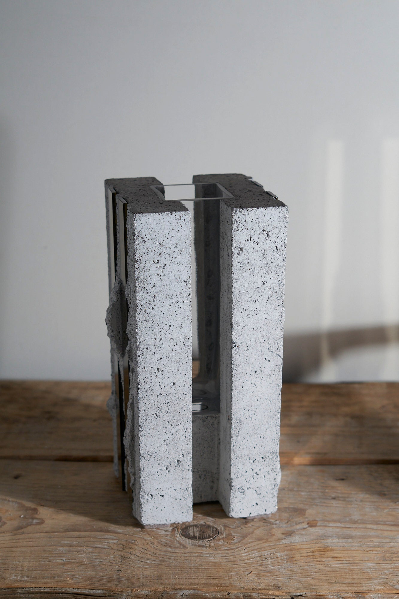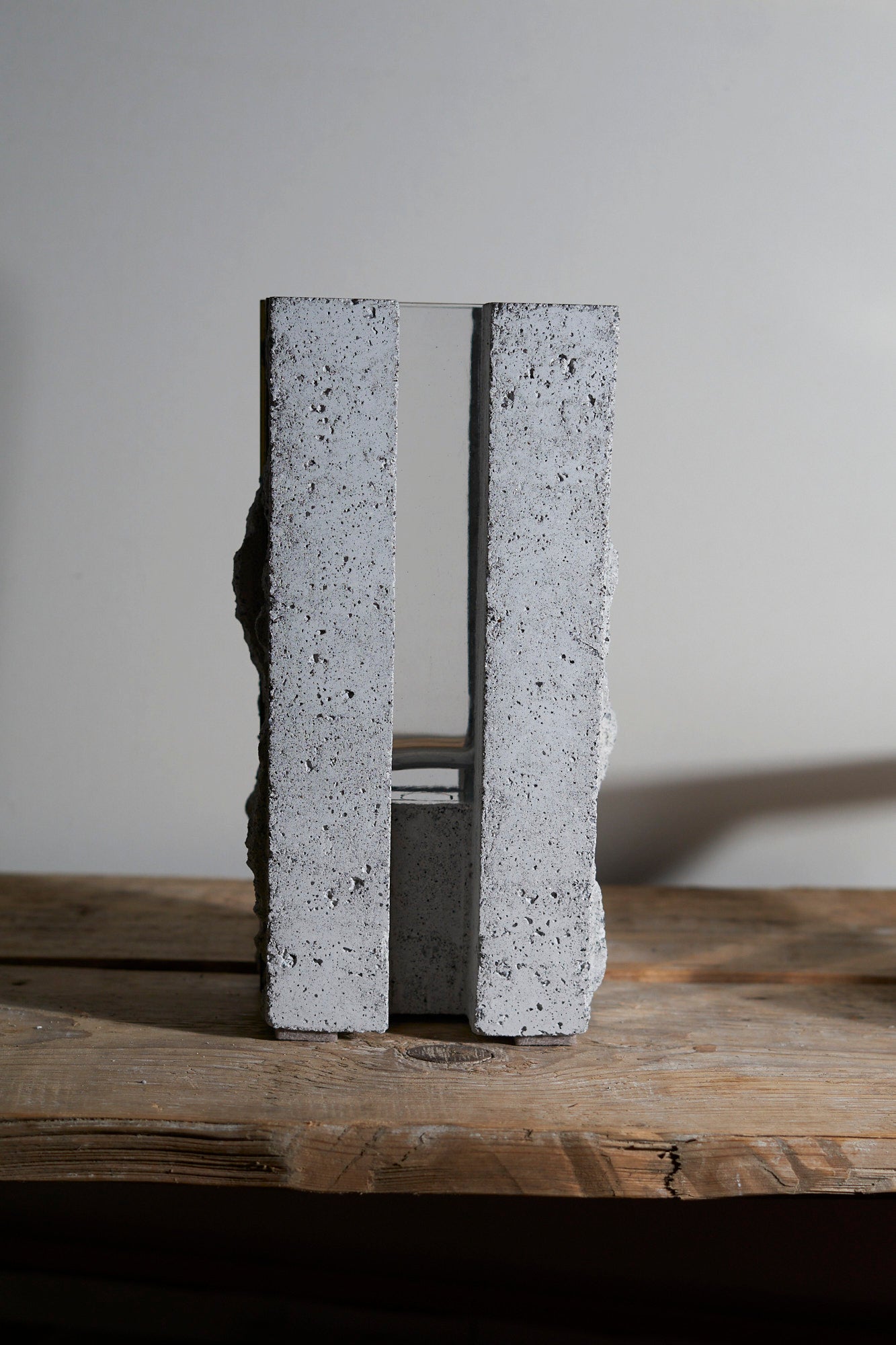 Prasklo is a brand of art vases by Prague female duo Petra Svejdarova and Klara vaculikova. Despite Prasklo has been collecting many positive responses from curators all over the world, it is not a commercial project. Prasklo sticks to artistic hand production of individual objects, not aiming for designing industrially produced goods. All vases are results of her fascination by the structure of glass which beauty can never be demeaned by disposing it; and its planting into a concrete pedestal.